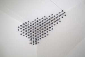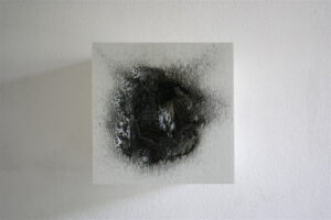 Some works result from direct action on materials: metallic objects are abraded until they produce incandescent scraps that are then hurled against a cube, incising and transforming it. Others recall molecular bonds, where form is defined precisely by the empty space that constitutes it. Photographs of launched metallic powders generate ephemeral, floating, almost cosmic images that question our relationship with what escapes the grasp of thought.