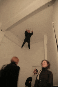 The image chosen for the exhibition poster reinforces this ambivalence: a figure caught between hanging and elevation. The body is poised at a critical point, where lightness brushes against gravity, and where freedom risks becoming constraint. It is precisely on this threshold that Morbin’s entire research unfolds.